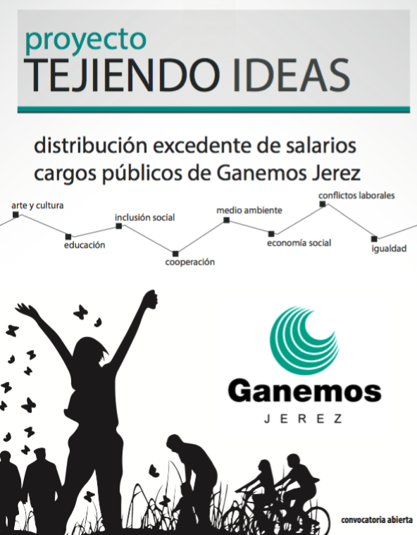 Ganemos Jerez presentó ayer el concurso público Tejiendo Ideas, una convocatoria abierta a todas las entidades y colectivos que, en el marco de Jerez, quieran presentar un proyecto de carácter social, sin ánimo de lucro, que beneficie a la ciudadanía para recibir financiación al respecto. Las bases del mismo se pueden consultar en la página web de la agrupación de electores (www.ganemosjerez.es), que hace un llamamiento a todos los medios de comunicación para la difusión del proyecto y a los colectivos y entidades sociales para la participación en el concurso.