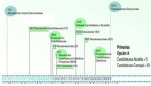 Se podrá votar presencialmente mediante papeletas en las que señalará los candidatos y el orden de los mismos, o a través de internet. El sistema de valoración y recuento de los votos es el conocido como VUT; voto único transferible. Su principal característica es que se considera óptimo para garantizar la equidad, representatividad y pluraridad de la candidatura. Una vez publicadas las candidaturas y desarrollada la campaña electoral a primarias, las votaciones se realizarán entre el 15 y el 18 de marzo, tanto presencialmente, como por internet. Será necesario acreditar la identidad, tanto presencial como telemáticamente, mediante presentación de documento legalmente admitido (DNI, pasaporte, carné de conducir, NIE).