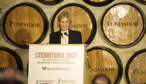 La alcaldesa de Jerez, María José García-Pelayo, ha acudido este martes al foro 'Territorio 2031', impulsado por lavozdelsur.es, donde representantes públicos de la provincia debaten sobre lo que supone la candidatura de Jerez a Capital Europea de la Cultura. El evento se celebra en Bodegas Fundador y cuenta con el apoyo de Ayuntamiento de Jerez, Diputación de Cádiz, Terry Mobility (concesionario de Omoda y Jaecoo), Jerez 2031, Bodegas Fundador, Caixabank y Alsan Homes.