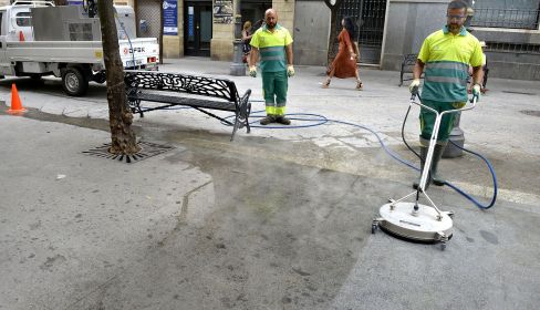 Uno de los propósitos principales de este refuerzo de limpieza es la eliminación de la cera que se adhiere a las calles del centro, alguna de las cuales lleva años sin ser limpiada adecuadamente.