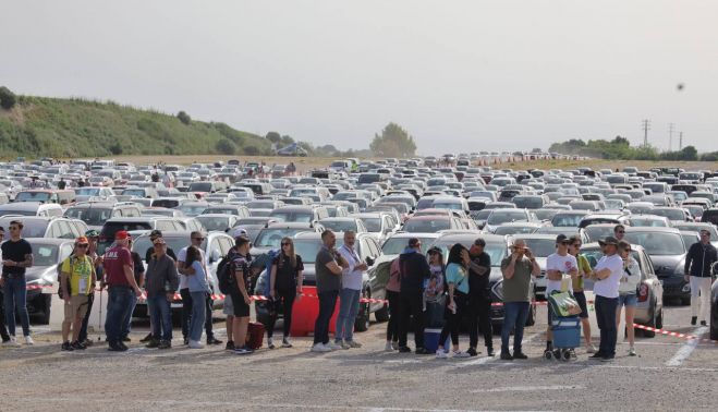 Una imagen significativa ha estado en uno de los aparcamientos de los terrenos aledaños de las instalaciones de la carretera de Arcos, con colas kilométricas de espectadores tratando de subir a uno de los autobuses lanzadera habilitados para llegar hasta un trazado donde, desde las nueve de la mañana, han comenzado los entrenamientos libres previos a la jornada de este sábado, donde ya serán oficiales, y a la prueba del próximo domingo.