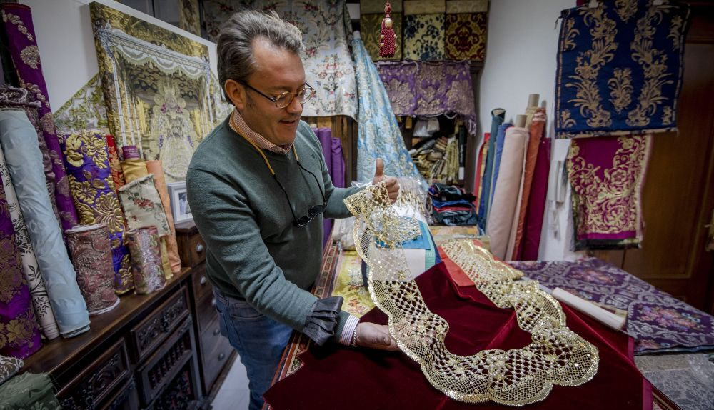 El trabajo se encuentra a falta de terminar detalles, un encargo que el bordador asumió como un reto dada la envergadura de diseño y elaboración que implicaba. El propio Calderón confiesa que ha sido intenso y duro, una pieza que tuvo una variación en su boceto para reforzar la identidad del manto, cambios que ahora cuando está casi terminado “han sido muy acertados”.