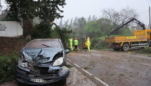 El conductor no presenta heridas de gravedad tras el incidente. En la A-2004, operarios se encargan de cortar los árboles y retirar las ramas para poder restaurar la circulación de una de las principales vías de acceso a la ciudad.