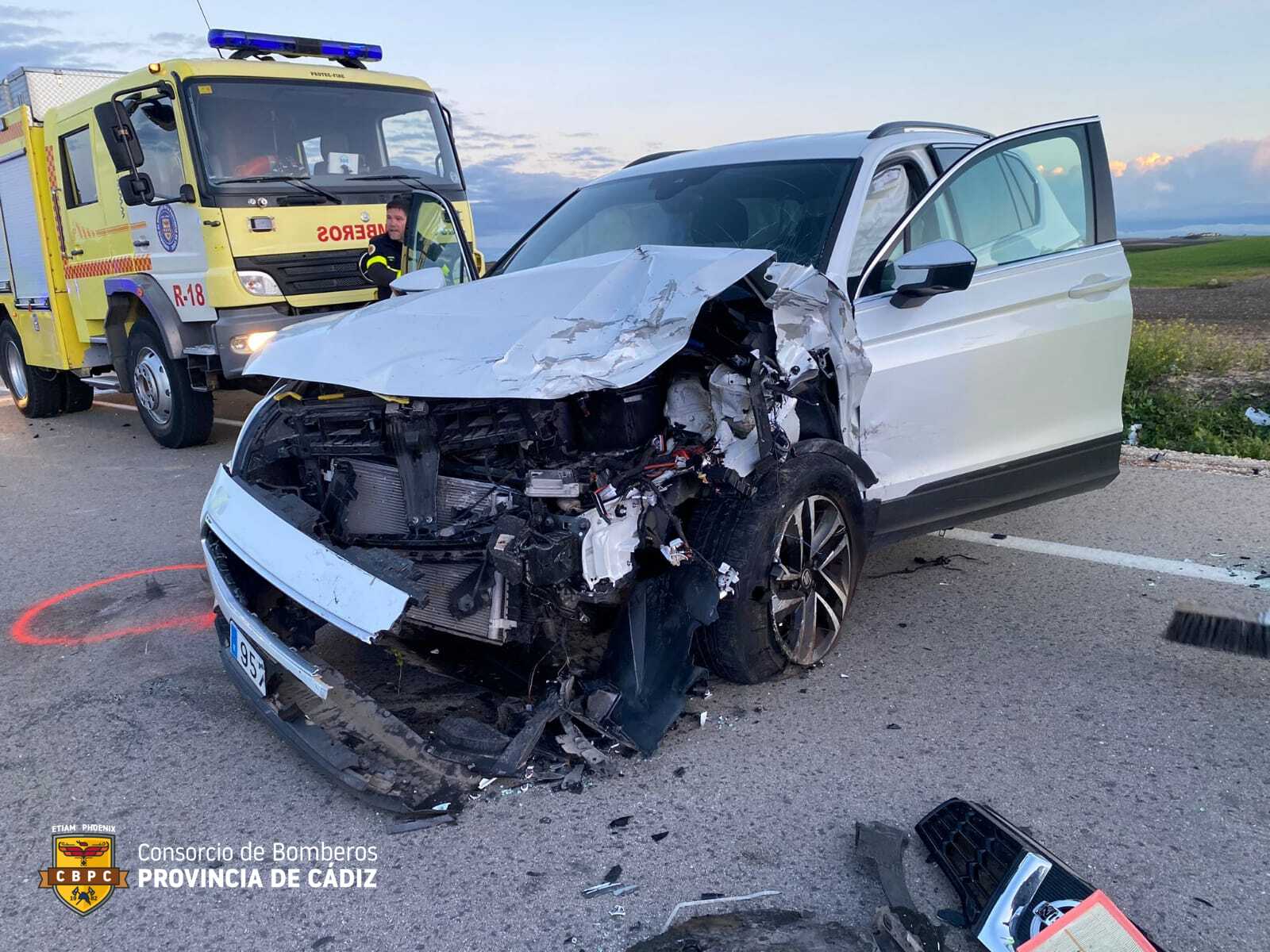 Una fortuita colisión frontal entre dos turismos ha dejado dos heridos en un accidente de tráfico que ha tenido lugar en la carretera de Jerez a Rota, la A-2078.