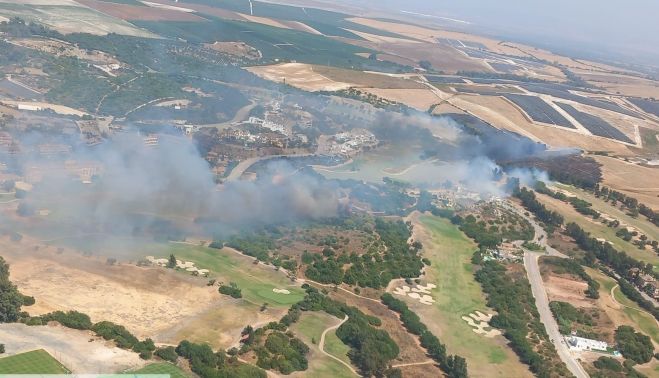 La zona de Montecastillo, una zona con hotel, campo de golf y urbanizaciones, próxima al Circuito de Jerez-Ángel Nieto, al norte de la campiña de Jerez, está sufriendo un grave incendio originado por causas desconocidas a primera hora de la tarde de este domingo.