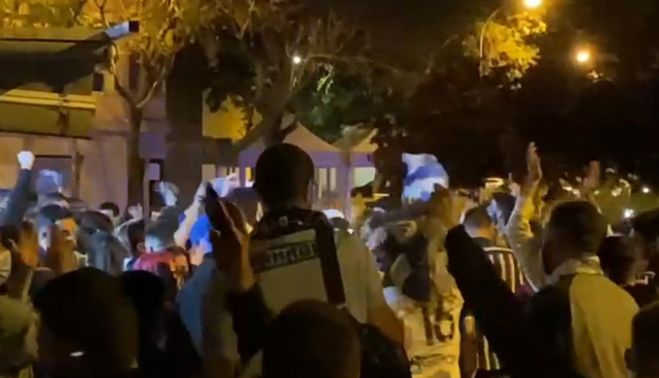Sin embargo, y a pesar de que el club pidió en redes e in situ que hubiera distancia y mascarillas, lo cierto es que un buen grupo de aficionados no cumplieron y dejaron algunas imágenes reprochables. Los grupos amplios de personas se acercaban y cantaban sin mascarilla o con esta mal colocada, los abrazos eran evidentes y había una alta concentración de personas en cada centímetro del entorno.
