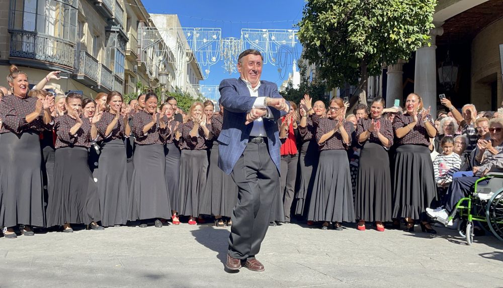 Se trata de uno de los eventos que conmemoran en la ciudad el Día del Flamenco que se ha celebrado esta misma semana. Uno de los grandes momentos ha llegado cuando ha sido el turno de Paco, uno de los alumnos emblemáticos. Los 'flashmob' cada vez son más frecuentes, más aún en lugares como Jerez donde el baile forma parte de la idiosincrasia de la ciudad. Se trata de una reunión en un lugar público para dar muestra de la capacidad musical de un grupo de personas.