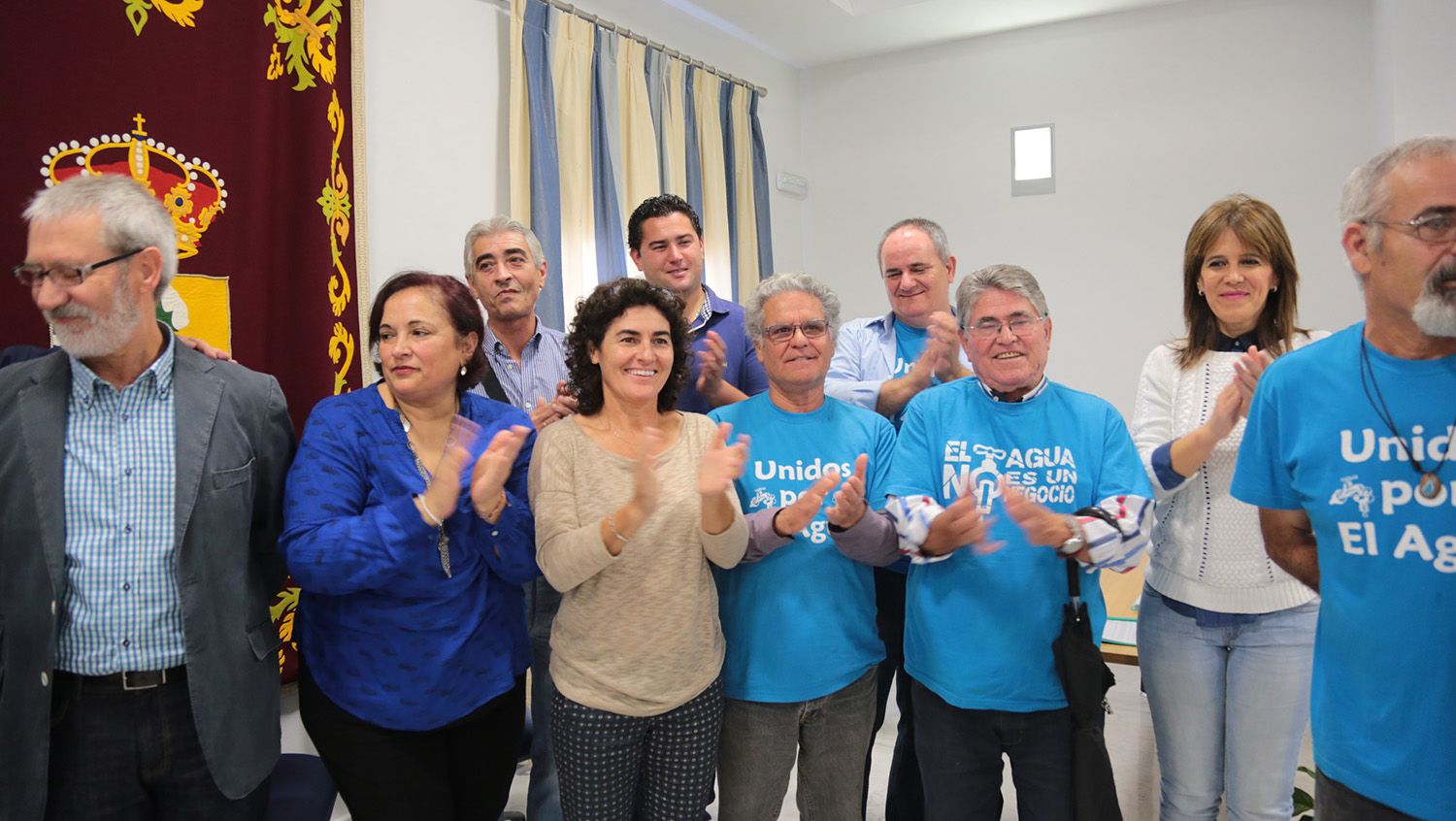 "Sois vosotros los que vais a llevar el agua", dijo Juan Nieto, presidente de la Mancomunidad de la Sierra. "Habéis sido leales a los bolsillos de los ciudadanos". Nieto habló también de estudios realizados por universidades que hablan de la mayor eficiencia de la empresa pública. "Facilita el control de las infraestructuras y no va a ser rehén de otras empresas". Aunque si había un hombre feliz en la sala ese era Paco López, miembro de la Coordinadora en Defensa de la Gestión Pública del Agua, quien apuntó que era "un momento de alegría" quedarse "con un trocito de la ciudad" para demostrar que "desde lo público se puede". "La calidad del servicio de Aguas de la Sierra es impresionante, está demostrado, por lo que este es un logro imponente", dijo. El acto terminó con una foto de familia, en la que estuvieron, además de los alcaldes pedáneos, los miembros de la Mancomunidad y de la Coordinadora del Agua, otras personalidades políticas como Manuel Cárdenas, delegado territorial de Fomento y Vivienda; el concejal de IU Joaquín del Valle; la concejal y diputada provincial Rocío Montero y Manuel Becerra, de Foro Ciudadano; Luis Babiano, gerente de la Asociación Española de Operadores Públicos de Agua (Aeopas); así como miembros de la plataforma Apemsa no se vende de El Puerto.