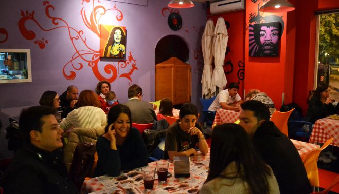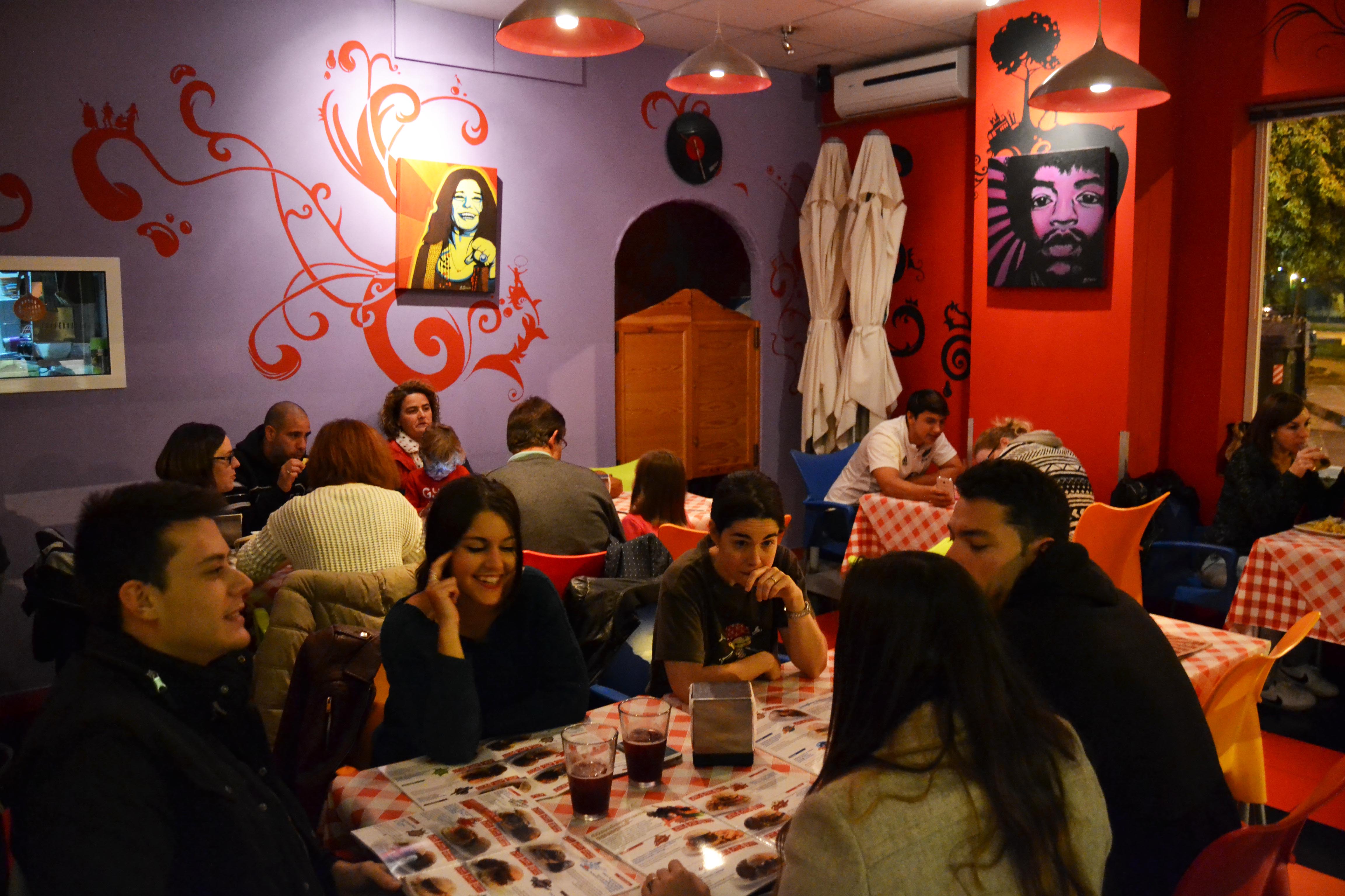 Colores llamativos, música y todo en un acogedor espacio. Esto ofrece Majareta Franklin. FOTO: CLAUDIA GONZÁLEZ ROMERO.Y vaya si la atrae. Majareta Franklin se suele quedar pequeño debido a su numerosa clientela y a sus reducidas dimensiones. El local apenas puede albergar ocho mesas, por lo que se recomienda reservar previamente. Música sesentera, paredes en colores rojo, verde y morado, pinturas con retratos de Jimi Hendrix… Juan, desde luego, ha querido darle una vuelta de tuerca en todos los sentidos a lo que es una hamburguesería tradicional. Porque si la decoración es especial, no menos lo son sus platos. Afirma que siempre le ha encantado cocinar, aunque no quiere denominarse cocinero. “Yo más que cocinar, sé comer, por eso siempre me he preocupado de investigar cómo se hacen las cosas”, señala el propietario, que igualmente reconoce todo el “complicado” proceso de idear las hamburguesas y llevarlas a cabo: “Mi casa es el laboratorio. Me paso todo el día probando cosas”.