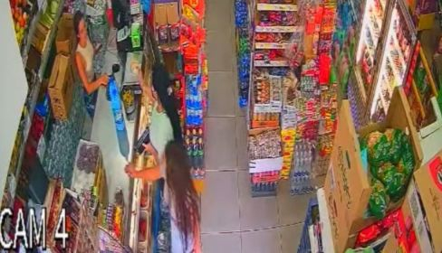 Mientras que la madre entretiene a la dependienta, haciéndole infinidad de preguntas sobre el cambio y el precio de varios productos, su supuesta hija se lleva una cesta cargada de productos y, no contenta con esto, regresa para guardarse en los bolsillos y dentro de la camiseta varias cosas que roba prácticamente en las narices de la empleada.