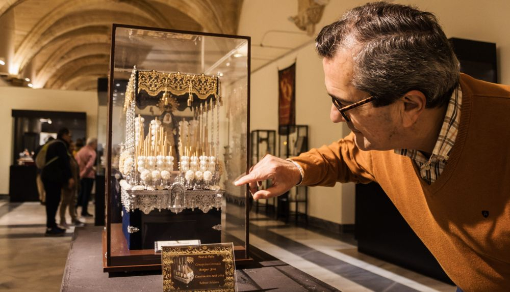 El año pasado este grupo montó una exposición en Sevilla, “pero el local que teníamos era muy pequeño y solamente podíamos poner ocho pasos”, relata Saldaña como el precedente que llevó a la exposición en Jerez. Casualmente, un día entró en los Claustros y contactó con empleados del área de Cultura a los que les contó a qué se dedicaban e inmediatamente los ficharon para esta Cuaresma.