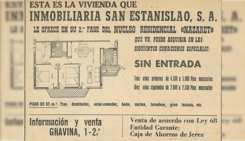 En Gala. Revista de Sociedad, Bellas Artes y Turismo que se publicaba en Madrid aparecía en la primavera de 1969 un anuncio de la inmobiliaria San Estanislao, fundada en tierras jerezanas, que ofertaba la segunda fase del núcleo residencial Nazaret. Una iniciativa urbanística que se encontraba entre las más llamativas de la llamada época del desarrollismo en Jerez.