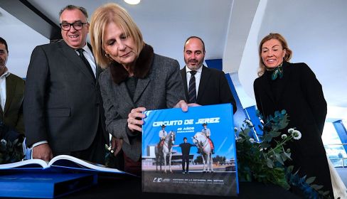 La alcaldesa de Jerez, María José García-Pelayo, junto al consejero de Turismo de la Junta de Andalucía, Arturo Bernal, ha subrayado la “contribución histórica” del libro ‘40 años cabalgando’, una obra que conmemora el 40 aniversario del Circuito de Jerez-Ángel Nieto y que rememora la épica de las grandes carreras de motociclismo y automovilismo que han convertido al trazado jerezano en la Catedral Mundial del Motor.