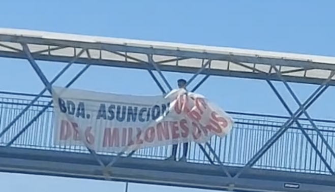 La colocación de esta pancarta formaba parte de una acción reivindicativa para visibilizar la situación que atraviesa el barrio. Desde la asociación vecinal insisten en que se trata de una medida de presión ante la falta de respuestas por parte de las administraciones públicas, en un proceso que actualmente se encuentra judicializado.