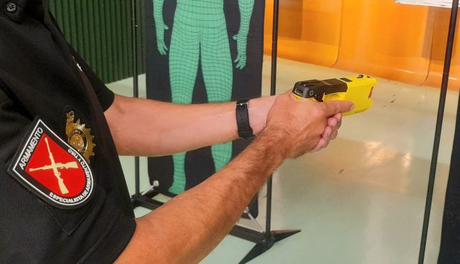 Ante esta situación de gran riesgo, tanto para los agentes como para el propio individuo, los policías nacionales desenfundaron la pistola eléctrica táser de dotación y continuaron tratando de negociar con el varón.