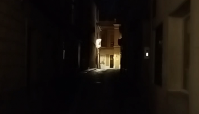 Las luces, que se habían puesto en modo parpadeo por razones que se desconocen, daban a la calle –a ello ayudaba también el silencio y lo solitario del lugar– un aspecto de película de miedo.