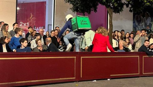 Y de entre todo ello, también han quedado imágenes, como poco curiosas. Un repartidor con una mochila de Uber Eats cruzando la carrera oficial en una zona de palcos.
