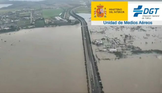 En un vídeo difundido por la DGT, puede verse toda la zona que hay alrededor del punto en que convergen la AP-4 y la A-381, es decir, la autopista Sevilla-Cádiz y la autovía que va desde Jerez a Los Barrios, entorno del monasterio de La Cartuja y barriadas rurales.
