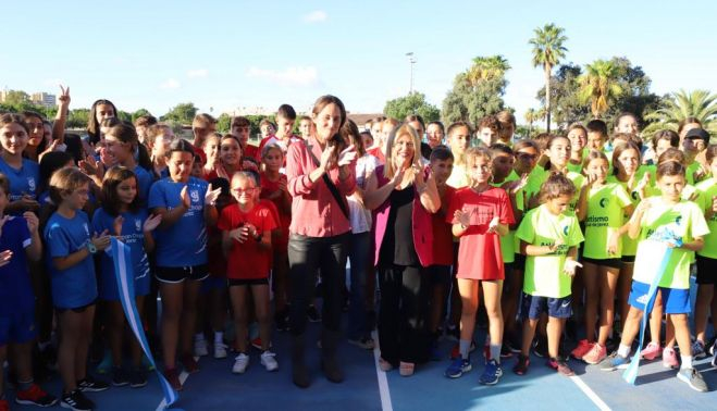 La alcaldesa, Mamen Sánchez, junto a la primera teniente de alcaldesa, Laura Álvarez, el teniente de alcaldesa de Urbanismo, José Antonio Díaz, y el delegado de Deportes y Medio Rural, Jesús Alba, ha supervisado la finalización de las obras de renovación integral de las pistas de atletismo del Anexo a Chapín y ha presidido, acompañada de la atleta Mercedes Chilla, el nuevo nombramiento de las instalaciones como Pistas de Atletismo ‘Mercedes Chilla’, como reconocimiento a su trayectoria y ejemplo como leyenda del atletismo español y emblema del deporte de Jerez.