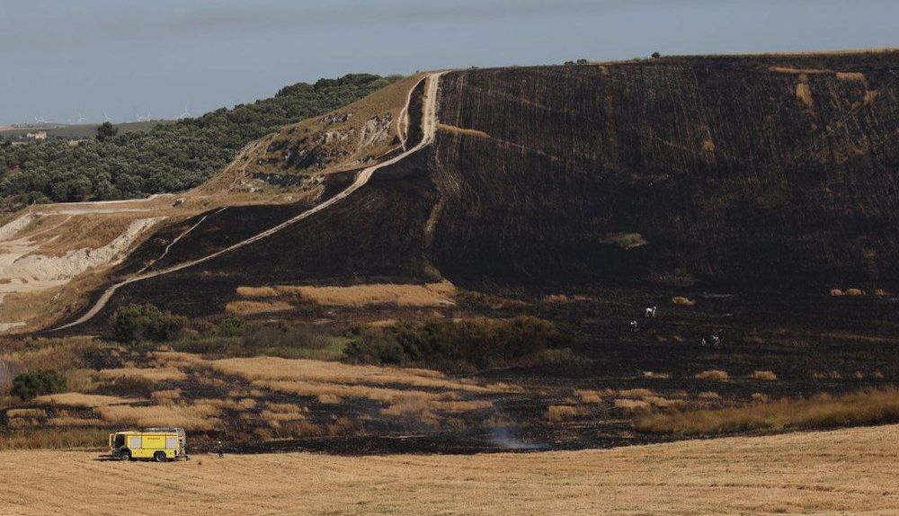 En la finca donde tuvo lugar el incendio, un enorme trigal en la zona de Guadabajaque, había animales, como caballos y perros, que estaban atados y fueron liberados para evitar que fueran pasto de las llamas.