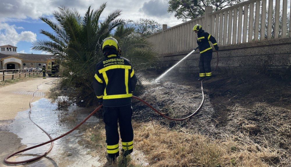 Bomberos de Jerez han tenido que intervenir tras comenzar a arder unos pastos situados en las proximidades del campo de fútbol Pepe Ravelo, cerca de la zona de la pradera hípica Bimba Delgado donde están las caballerizas.