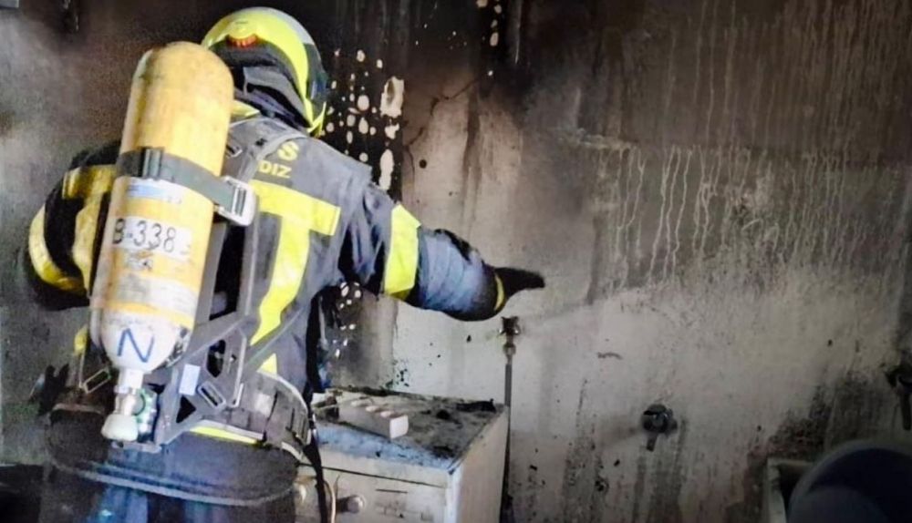 El fuego se origina y afecta al lavadero de un piso ubicado en la cuarta planta de uno de los bloques de esta urbanización. A la llegada de los efectivos del Consorcio de Bomberos de la Provincia de Cádiz (CBPC), observan que ya se han descargado varios extintores en esta estancia del hogar.