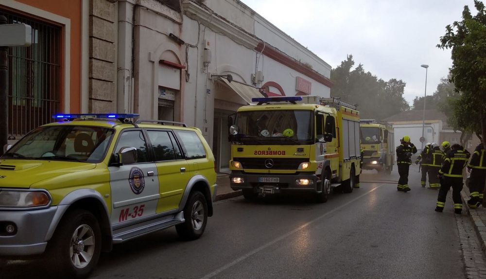 Los bomberos del Consorcio Provincial de Cádiz en Jerez trabajan esta tarde en un incendio ocurrido en la calle Circo. En concreto, se trata de un local que da también hacia la calle Nuño de Cañas, muy cerca del centro.