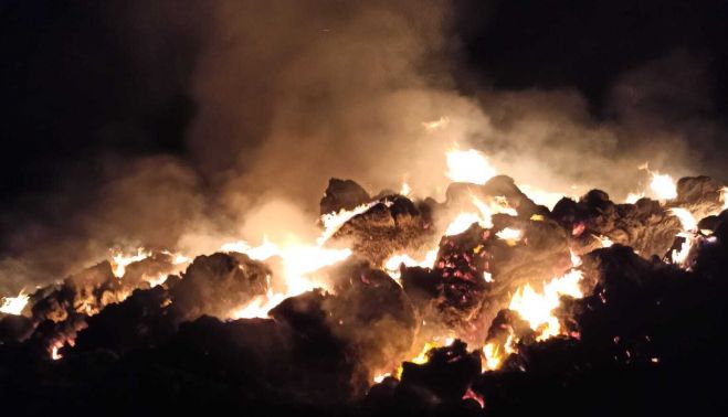 Bomberos del parque de Jerez han estado toda la noche interviniendo en el incendio de pajar en la CA-5100, km 9,5, en Finca la Romanina La Alta, término de Jerez, entre Gibalbín y El Cuervo, muy cerca de la autopista. El pajar se encuentra al aire libre con el peligro de que hay cercano un terreno sembrado de trigo, según informan desde el Consorcio.