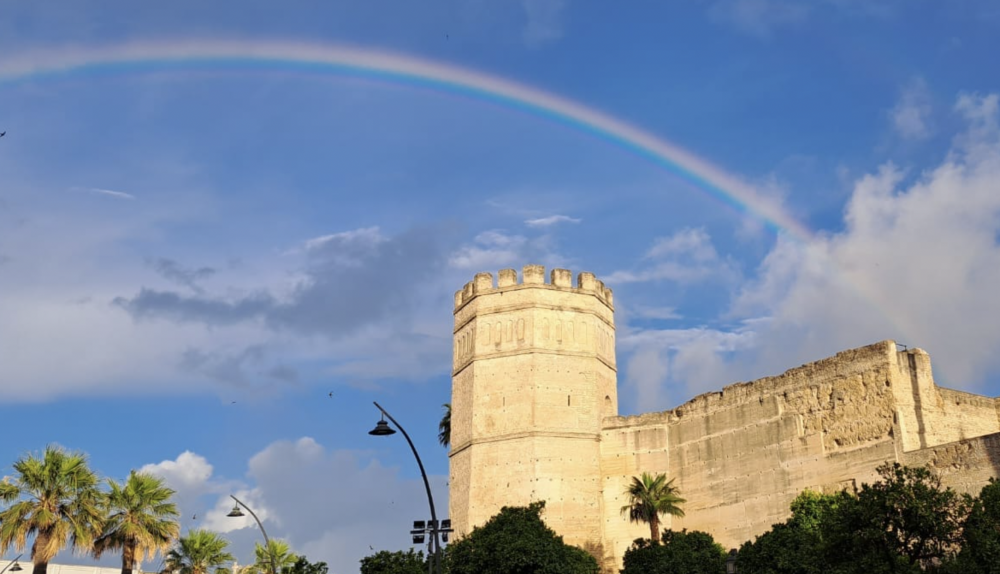 La DANA que acecha al país estos días está provocando lluvias y bajadas de temperaturas en la provincia de Cádiz. Estas precipitaciones a la vez que un sol radiante han dado lugar al arcoríris, colores que caracterizan a la bandera del colectivo LGTBIQ+. Este fenómeno óptico que tiene lugar cuando los rayos de luz del sol brillan a través de las gotas de lluvia ha sorprendido a visitantes y vecinos. Tanto, que ha sido el tema del día en las plazas y en las barras de los bares.