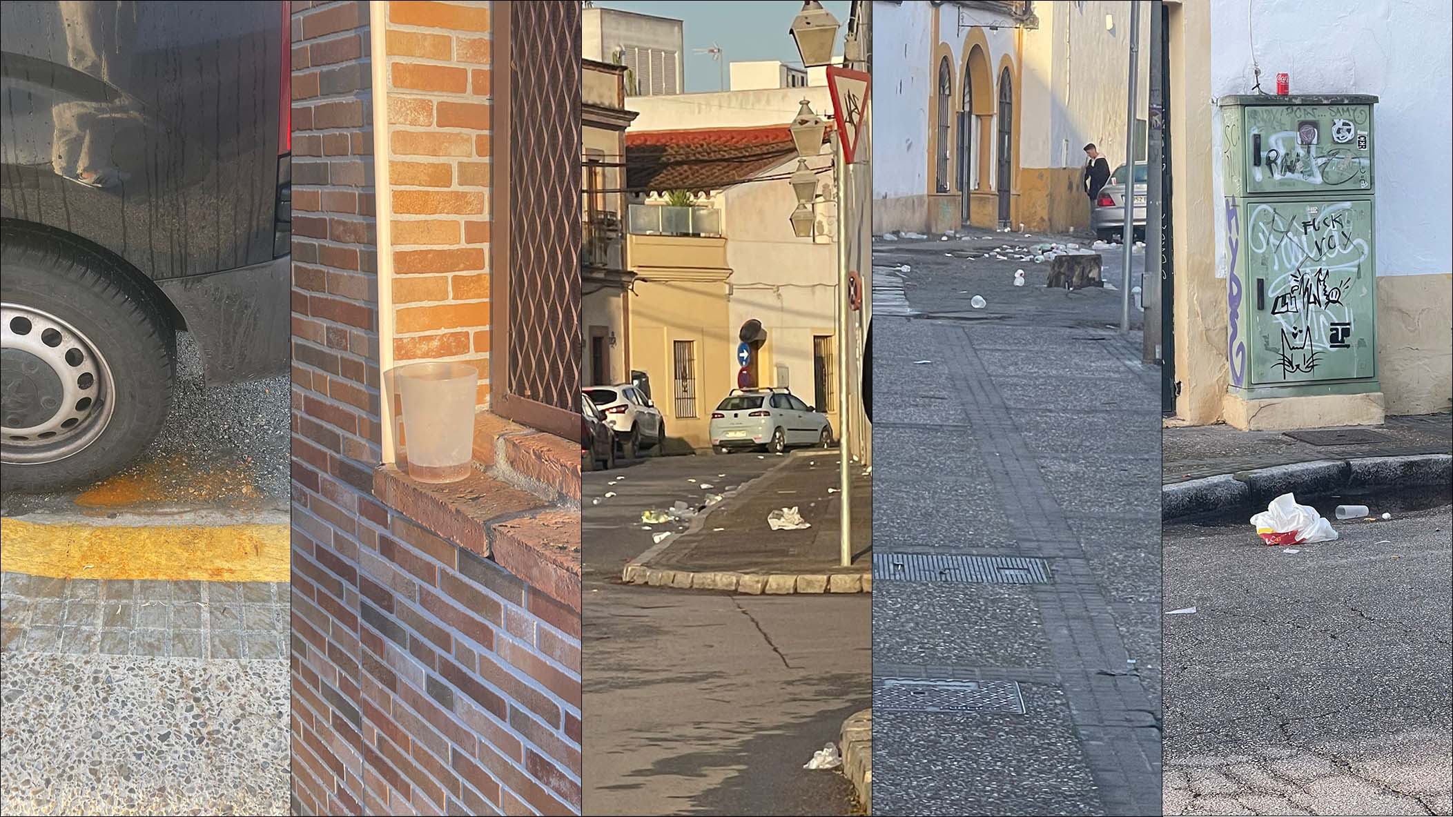 Cada semana, los vecinos del entorno de la Sala La Comedia, ubicada en la calle Clavel de Jerez, se encuentran con una nueva y desagradable sorpresa. Rara es la mañana de fin de semana que no tienen que recoger botellas o bolsas del suelo, que lamentar algún daño en su vehículo, e incluso en el interior de sus viviendas.
