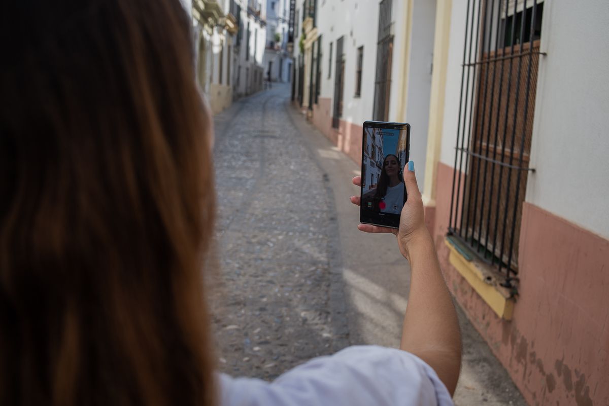 “La gente no se lo cree, ¿la hiciste tú?”. El mundo se ha revolucionado desde que sabe que el famoso filtro de Tik Tok llamado greenscreen corresponde a una calle real: una fotografía colorida de la calle Carpintería Baja de Jerez. La estrecha vía de intramuros, corazón del casco histórico, se ha convertido en el fondo de millones de vídeos que vagan por la red social. Lo que no sabe nadie es quién está detrás de este croma que causa furor.