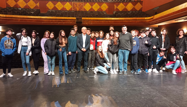 El delegado de Reactivación Económica, Captación de Inversiones, Educación y Empleo, Juan Antonio Cabello, ha participado en una de estas sesiones en las que personal del teatro acompaña al alumnado en una visita guiada, mientras explica el funcionamiento y organización de este servicio cultural fundamental para la ciudad.
