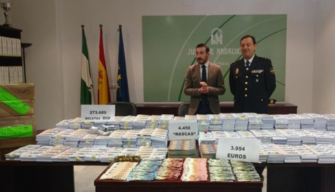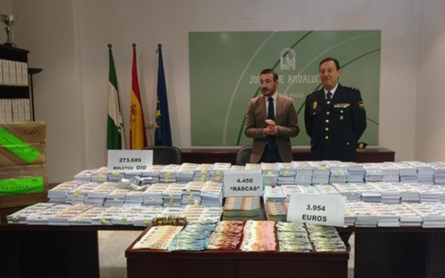 En total, esta triple actuación policial contra la OID ha finalizado con el decomiso de 273.680 boletos clandestinos que se iban a distribuir por toda la provincia, otros 4.450 del 'rasca', formato que hasta ahora no se había detectado, y 3.954 euros, lo que la convierte en la más importante de las actuaciones contra el juego ilegal de las desarrolladas en Andalucía, según ha indicado la Junta.