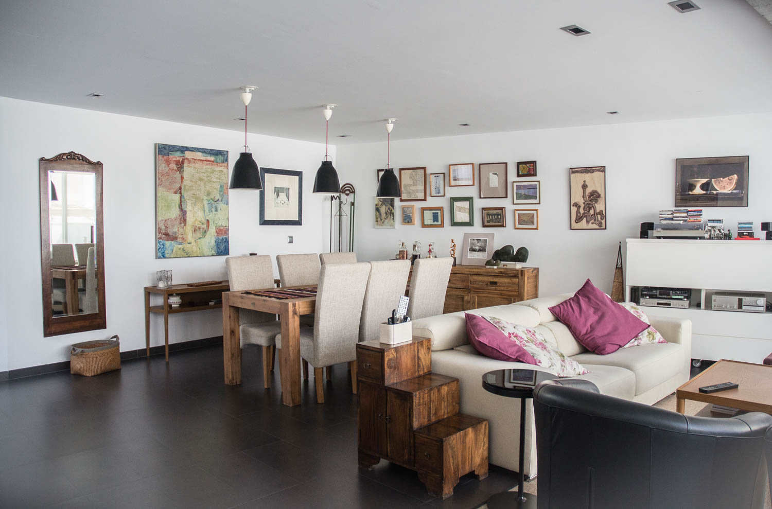 Media vida es lo que llevan Manuel Benicio y Maite Ortiz viviendo en el centro. Lo tenían claro desde jóvenes y con 25 años vieron cumplido su sueño. Adquirieron una casa en la calle Almenillas que reformaron y donde además montaron uno de los primeros bares musicales de Jerez, 'El Tragaluz', que acabó convirtiéndose en un clásico hasta su cierre en 1999. A primeros de los 2000 la pareja tenía claro que quería cambiar de domicilio pero sin moverse de intramuros. Fue entonces cuando le echaron el ojo a un solar en la plaza Ponce de León, junto al Salvador, ocupado entonces por una casa abandonada y en ruinas. “Teníamos ya la experiencia de la rehabilitación de la casa de Almenillas, que fue muy bonita, pero es un trabajo realmente duro y tienes que estar muy pendiente del mantenimiento. Además queríamos tener la experiencia de vivir en una casa nueva”, relata Manuel en el salón de su domicilio, el ejemplo perfecto de integración de una vivienda contemporánea en pleno centro de Jerez.