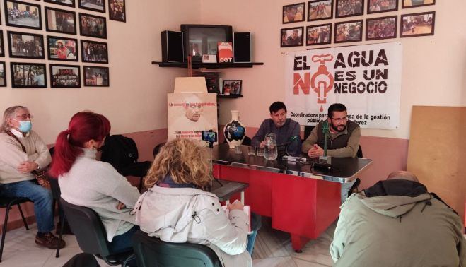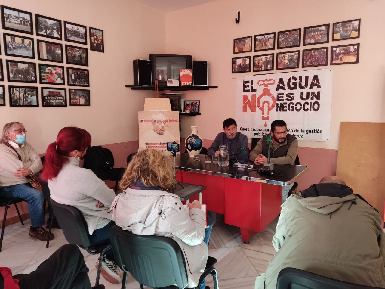 A continuación, y en nombre de la Coordinadora del Agua de Jerez, tomarán la palabra Kika González, concejala en el Ayuntamiento de Jerez y Manuel Bertolet, vocal en el Ayuntamiento de Torrecera, quienes harán una exposición de la situación actual de la gestión del agua en Jerez, tanto en su núcleo urbano como en la zona rural.