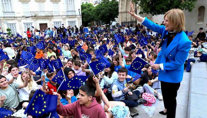 Un momento destacado de la jornada ha sido la presencia de más de 700 escolares de la ciudad, provenientes de una veintena de centros educativos, tanto urbanos como rurales. Estos estudiantes nacidos en 2013 y 2014 son los que, en 2031, alcanzarán la mayoría de edad, coincidiendo con la aspiración de Jerez a convertirse en Capital Europea de la Cultura. Esta participación refuerza la conexión entre el futuro de la ciudad y el proyecto europeo.
