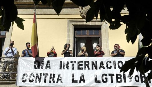El Ayuntamiento de Jerez conmemora hoy de la mano con Jerelesgay el Día Internacional contra la LGTBIfobia. La alcaldesa, Mamen Sánchez, junto a la presidenta de Jerelesgay, Susana Domínguez, y Begoña Sánchez, del Observatorio Diversaci, han instalado hoy la pancarta reivindicativa de esta jornada en la fachada municipal, un acto simbólico que se suma a las actividades de sensibilización y educativas que ambas entidades comparten a lo largo de todo el año. Posteriormente, se ha procedido a dar lectura por parte de Eduardo Coronilla, de Jerelesgay, al Manifiesto del Día contra la LGTBIfobia en el patio del Consistorio, con la presencia de la delegada Ana Hérica Ramos, y miembros de la Corporación.
