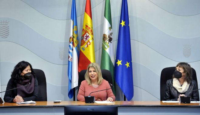 La alcaldesa de Jerez, Mamen Sánchez, junto a las delegadas de Economía, Laura Álvarez, y de Vivienda, Ana Hérica Ramos, ha informado sobre la aplicación de la partida de 200.000 euros del fondo de contingencia aprobado el año pasado por el Consistorio para la reducción de deuda a familias inquilinas del parque público de viviendas de Emuvijesa.