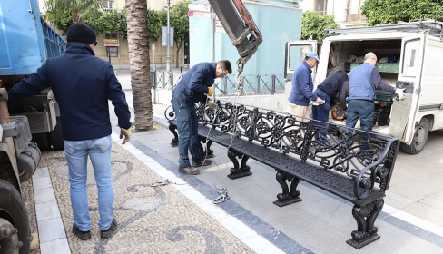 🪑 El servicio de Infraestructuras avanza en la restauración del mobiliario urbano con el adecentamiento de los bancos de la Plaza del Arenal