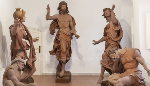 Las imágenes de este conjunto tienen unas medidas y proporciones que sólo aplicó en los misterios del Descendimiento y en esta Resurrección. Las figuras tienen una dimensión de 2,40 metros, proporciones inusuales en la imaginería. Tenía un concepto de la imagen de su escenografía muy valiente e intentaba siempre situarse desde el punto de vista del espectador.