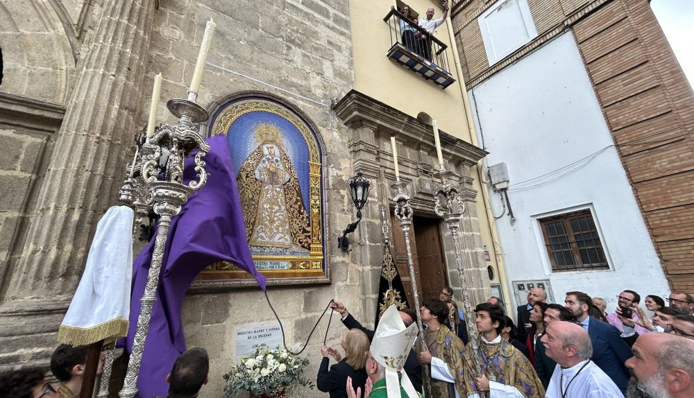 La alcaldesa de Jerez, María José García-Pelayo, ha acudido al despliegue de una cortina para inaugurar la pieza restaurada. "La Virgen de La Soledad vuelve a bendecir a los jerezanos desde la fachada de La Victoria. Gracias a los hermanos de La Soledad por el gran trabajo para restaurar el retablo cerámico antiguo y haber logrado esta réplica exacta a la que se colocó hace 80 años", ha dicho la alcaldesa.