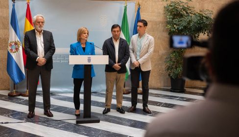 "El trabajo con Hacienda está siendo fluido, estamos entendiéndonos dentro de las limitaciones que tenemos cada Administración", anuncia la alcaldesa, María José García-Pelayo, en la rueda de prensa ofrecida este viernes, rodeada por los tenientes de alcaldesa Agustín Muñoz y Jaime Espinar, y por el delegado de Hacienda, Francisco Delgado.