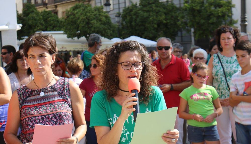 En Jerez, la concentración no solo estuvo apoyada por padres y madres de los escolares, sino también por toda la comunidad educativa y la ciudadanía. Casi un centenar de personas se reunieron en la plaza del Arenal para reivindicar una mejora en el sistema de climatización de los centros escolares, además de reclamar el incremento de personal en Educación y la puesta en marcha de las obras del nuevo instituto previsto en la zona de La Granja. No obstante, el tema principal de la concentración fue "aulas sí, saunas no", como corearon en reiteradas ocasiones durante el encuentro. "No podemos ni vamos a consentir que nuestros hijos e hijas, el profesorado y el personal que trabaja en los centros educativos, pasen ni calor ni frío en las aulas", pronunció Sánchez.