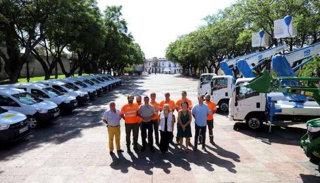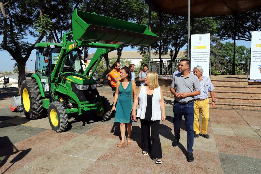 El servicio de parques y jardines de Jerez cuenta con tres nuevos camiones-plataforma, un tractor ‘desbrozador’ y 14 nuevas furgonetas operativas de acceso. La alcaldesa, Mamen Sánchez, ha asistido a la presentación de la nueva batería de vehículos técnicos que la concesionaria incorpora al servicio. La regidora ha subrayado “la gran apuesta de este Gobierno local por los servicios públicos de la ciudad, que estamos renovando desde la perspectiva medioambiental y de calidad en sus prestaciones para que la ciudad siga mejorando”.