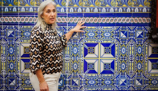 Un trabajo artesanal reluce en la fachada de la capilla de San Juan de Letrán en Jerez. Cuatro azulejos de la imagen de la Virgen del Traspaso, de la Hermandad del Nazareno se habían desprendido. Sus trozos llegaron a las manos de la ceramista jerezana Mercedes Narbona, a la que llaman Meme, que los ha rehecho desde cero. “Esto es un mural de cerámica Santa Ana”, dice, señalando una de sus últimas restauraciones.
