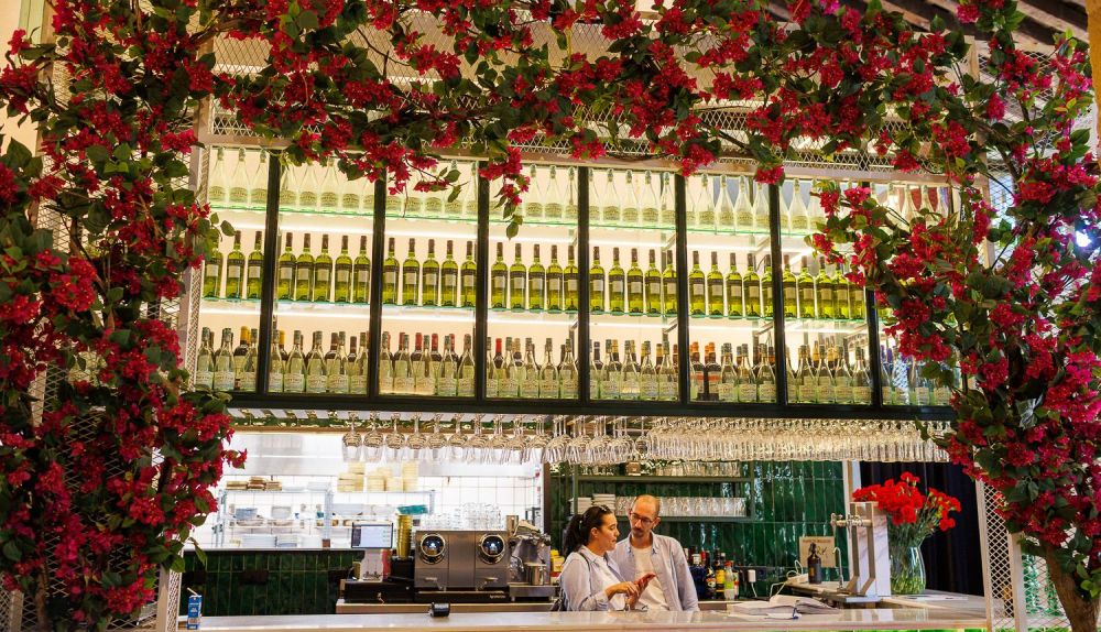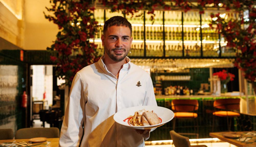 "La idea original era mantener todo lo antiguo, respetar todo casi al 100%, y que se equilibrara con un punto más moderno y con una línea más andaluza, como los azulejos en las mesas", cuenta el propietario de un local con una sala para 86 comensales y con una cocina que "es más grande que el local entero que teníamos antes", a escasos metros de la ubicación actual. "Allí —abunda— todo era como de juguete, cabíamos cuatro personas en cocina, era imposible hacer más de lo que hacíamos. Aquí tenemos, aparte de mucho espacio, más herramientas que nos ayudan mucho".