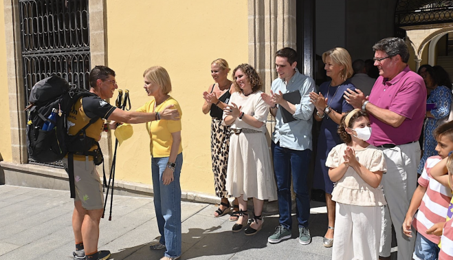 García-Pelayo no ocultó su admiración por el deportista. “Es un honor tener a José Antonio en Jerez. Él tiene un corazón doblemente grande, porque de Ubrique se fue a Irún para desde allí hacer 5.500 kilómetros apoyando una causa noble. Nos está dando un ejemplo de compromiso y de corazón, porque ha aparcado su vida para dedicarla a los demás, y para hacer un sacrificio inmenso, porque no es fácil hacer este reto solidario en verano”, expresó.