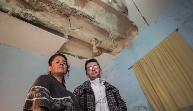 El techo del cuarto de baño está negro de la humedad, el de la habitación de matrimonio amenaza con caerse más temprano que tarde, es difícil encontrar dos lozas seguidas que estén enteras, hay grietas por todas partes… “Salimos de la casa porque crujía como un Kit Kat”, recuerda Yolanda, madre de tres niños, de 16, once y diez años, que vivían con ella y su marido, José Antonio. “Me quedé en pijama en la calle con mis hijos”, dice ella. Todos fueron testigos de cómo los bomberos aseguraban la casa y les aconsejaban que la deshabitaran, permitiéndoles entrar unos minutos para coger algo de ropa. Había que apuntalar. Pero el propietario no daba señales, requisito indispensable para acometer esta tarea, que conlleva un coste. Entonces, se repartieron: los dos pequeños durmieron en casa de su abuelo paterno durante el primer fin de semana, el mayor con un amigo y, el matrimonio, con la madre de Yolanda, que está destrozada: “No tengo ni lágrimas, no se dónde ir”.