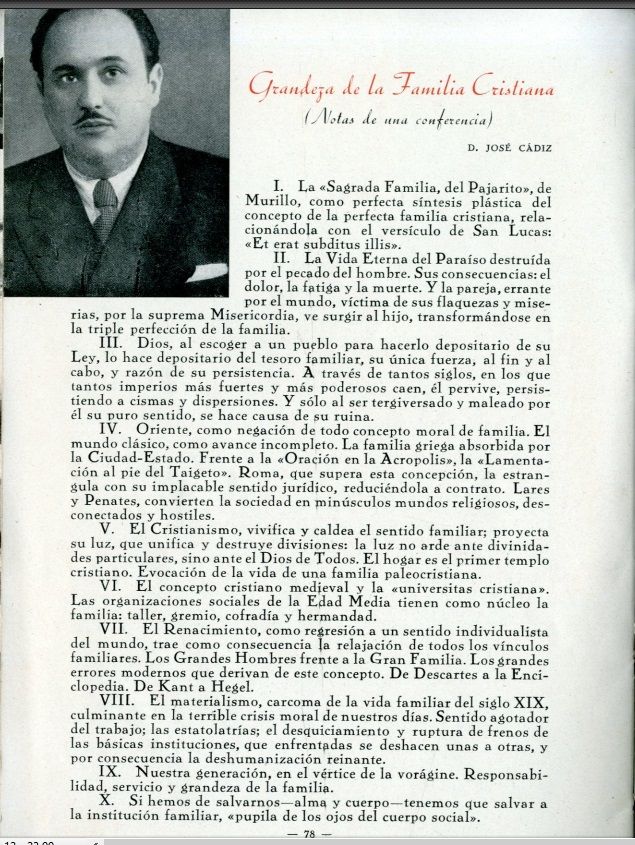 Su concepción medievalista y ultracatolicista de la familia estaba en perfecta sintonía con la ortodoxia franquista, en la cual, para él, tiene sentido hasta descalificar -en este texto suyo de 1945- el Renacimiento "como regresión a un sentido individualista del mundo":