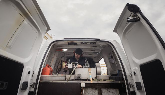 Cuando Simón se jubiló, José Miguel le compró el negocio y dio el salto definitivo para dedicarse al oficio de afilador. Los inicios no fueron sencillos, ya que "me dejaron una cartera de 15 clientes y al segundo mes los había perdido todos. Hice una inversión de 30.000 euros para comprar la furgoneta y las herramientas y de repente me vi con una deuda importante y sin trabajo que hacer", recuerda.
